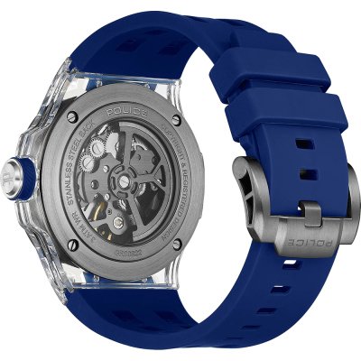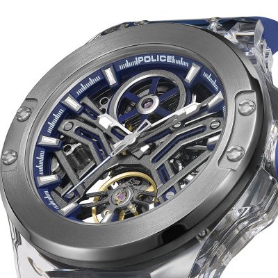 This Police watch has a case made of Resin with a diameter of 44 mm and is fitted with a rubber band. Inside the case lies a CN movement and the watch features a Mineral crystal.
