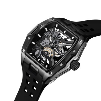 This Police watch has a case made of stainless steel with a diameter of 44.5 mm and is fitted with a rubber band. Inside the case lies a Seiko Instruments Inc. movement and the watch features a Mineral crystal.