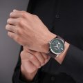 This Police watch has a case made of stainless steel with a diameter of 44 mm and is fitted with a leather band. Inside the case lies a Seiko movement and the watch features a Mineral crystal.