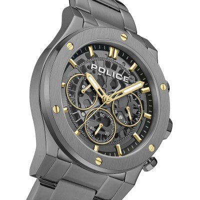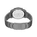 This Police watch has a case made of stainless steel with a diameter of 42 mm and is fitted with a stainless steel band. Inside the case lies a Seiko movement and the watch features a Mineral crystal.
