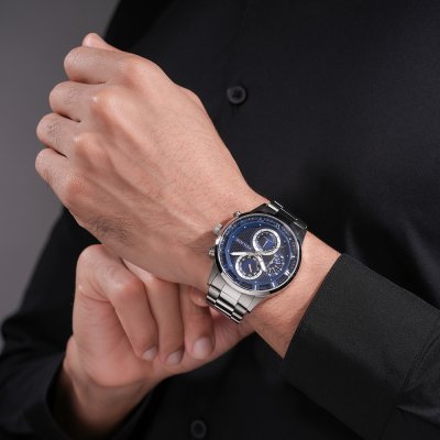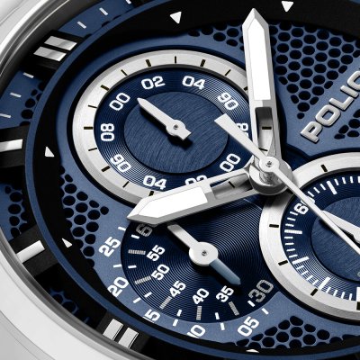 This Police watch has a case made of stainless steel with a diameter of 43 mm and is fitted with a stainless steel band. Inside the case lies a Seiko Instruments Inc. movement and the watch features a Mineral crystal.