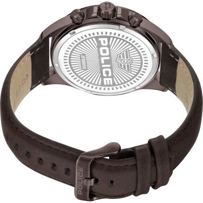 This Police watch has a case made of stainless steel with a diameter of 45 mm and is fitted with a leather band. Inside the case lies a Seiko Instruments Inc. movement and the watch features a Mineral crystal.