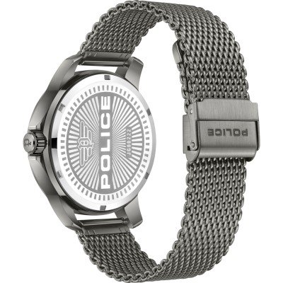 This Police watch has a case made of stainless steel with a diameter of 44 mm and is fitted with a stainless steel band. Inside the case lies a Miyota movement and the watch features a Mineral crystal.