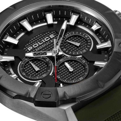 This Police watch has a case made of stainless steel with a diameter of 46 mm and is fitted with a leather band. Inside the case lies a Seiko Instruments Inc. movement and the watch features a Mineral crystal.
