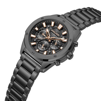 This Police watch has a case made of stainless steel with a diameter of 43 mm and is fitted with a stainless steel band. Inside the case lies a Seiko Instruments Inc. movement and the watch features a Mineral crystal.