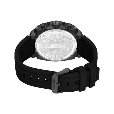 This Police watch has a case made of stainless steel with a diameter of 45 mm and is fitted with a rubber band. Inside the case lies a Seiko Instruments Inc. movement and the watch features a Mineral crystal.