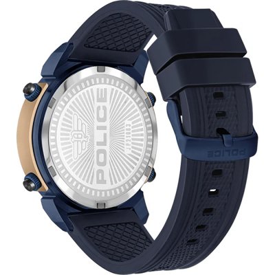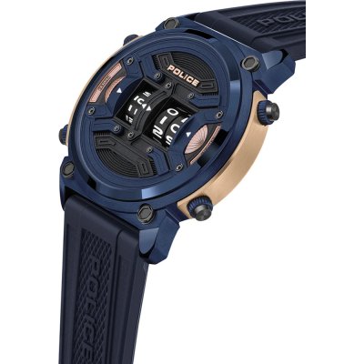 This Police watch has a case made of stainless steel with a diameter of 50 mm and is fitted with a rubber band. Inside the case lies a CN movement and the watch features a Mineral crystal.