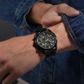 This Police watch has a case made of stainless steel with a diameter of 44 mm and is fitted with a stainless steel band. Inside the case lies a Sunon movement and the watch features a Mineral crystal.