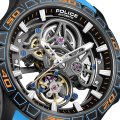 This Police watch has a case made of stainless steel with a diameter of 45 mm and is fitted with a rubber band. Inside the case lies a Seagull movement and the watch features a Mineral crystal.