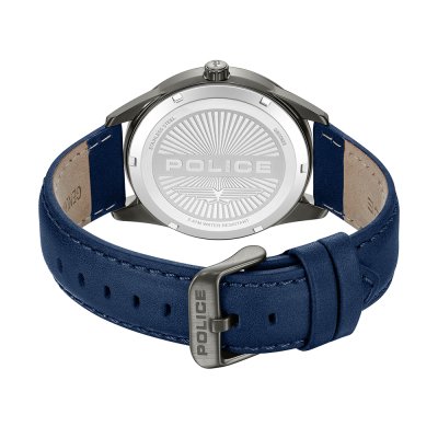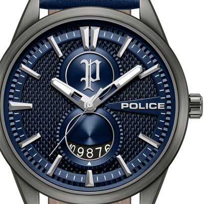 This Police watch has a case made of stainless steel with a diameter of 43 mm and is fitted with a leather band. Inside the case lies a Seiko Instruments Inc. movement and the watch features a Mineral crystal.