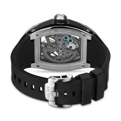 This Police watch has a case made of Aluminum with a diameter of 42 mm and is fitted with a rubber band. Inside the case lies a CN movement and the watch features a Mineral crystal.
