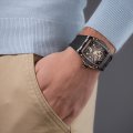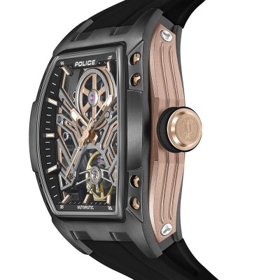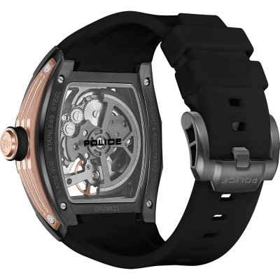 This Police watch has a case made of Aluminum with a diameter of 42 mm and is fitted with a rubber band. Inside the case lies a CN movement and the watch features a Mineral crystal.