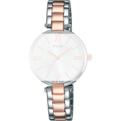 This Pulsar watch strap is made of stainless steel and is attached to the watch by means of saddle screw. The band has a width of 12 mm and is closed by means of a deployment clasp with push buttons. The strap has no straight mount which means that this strap is only suitable for the watches listed below.