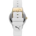 This Puma watch has a case made of Resin with a diameter of 38 mm and is fitted with a rubber band. Inside the case lies a Seiko movement and the watch features a Mineral crystal.
