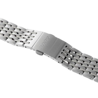This Rado watch strap is made of stainless steel and is attached to the watch by means of pushpins. The band has a width of 19 mm and is closed by means of a deployment clasp with push buttons. The strap has no straight mount which means that this strap is only suitable for the watches listed below.