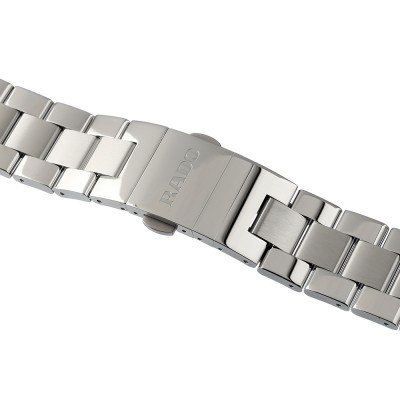 This Rado watch strap is made of stainless steel and is attached to the watch by means of pushpins. The band has a width of 19 mm and is closed by means of a deployment clasp with push buttons. The strap has no straight mount which means that this strap is only suitable for the watches listed below.