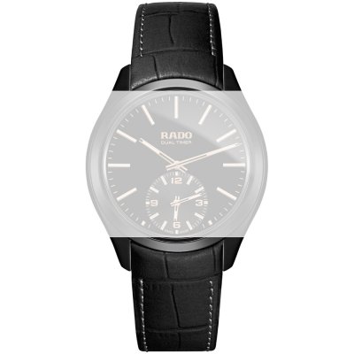 This Rado watch strap is made of leather and is attached to the watch by means of pushpins. The band has a width of 21 mm and is closed by means of a deployment buckle. The strap has no straight mount which means that this strap is only suitable for the watches listed below.
