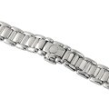 This Raymond Weil watch strap is made of stainless steel and is attached to the watch by means of pushpins. The band has a width of 16 mm and is closed by means of a butterfly clasp with push buttons. The strap has no straight mount which means that this strap is only suitable for the watches listed below.