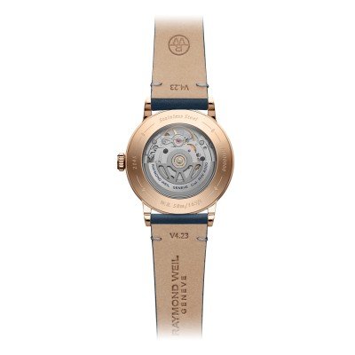 This Raymond Weil watch has a case made of stainless steel with a diameter of 35 mm and is fitted with a leather band. Inside the case lies a Raymond Weil movement and the watch features a Sapphire crystal.