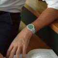 The Raymond Weil Millesime collection is inspired by the elegance of mid-century watches, reimagined in a modern context. Rather than taking the easy road and replicating past designs, Raymond Weil brings us a fresh interpretation of vintage charm, resulting in a watch that feels both timeless and current. The Millesima watch will appeal to lovers of vintage style and ‘haute horlogerie’ afficionados alike. The ‘sector dial’ features contrasting finishes, the hour track is smooth, the minute track is snailed and the central area of the dial has a delicate vertical brush structure. Three distinct concentric tracks, progress in size from seconds (180 markers) to minutes (60 markers) and hours (12 markers), for precision time reading, with the small seconds display at 6 o’clock, positioned in a neat recessed circlet. The dial is encased in a stainless steel case with boxed AR coated sapphire crystal. The bezel decorated with a vertical satin-brush contrasting with the highly polished bevel. Powered by an automatic RW4251 (Based on the SW260) movement with a customised W-shaped rotor, featuring 31 jewels, beating at 28,800bph with 41 hours of power reserve, the Millesime juxtaposes retro charm, a modern movement and attention to detail all contributing to the excellent overall level of finishing.