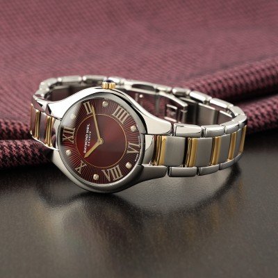 This Raymond Weil watch has a case made of stainless steel with a diameter of 32 mm and is fitted with a stainless steel band. Inside the case lies a ETA movement and the watch features a Sapphire crystal.