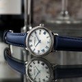 The comfortable leather strap is covered with a layer of refined blue satin.