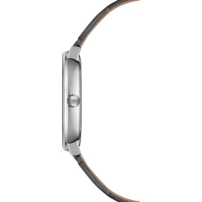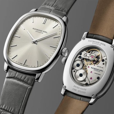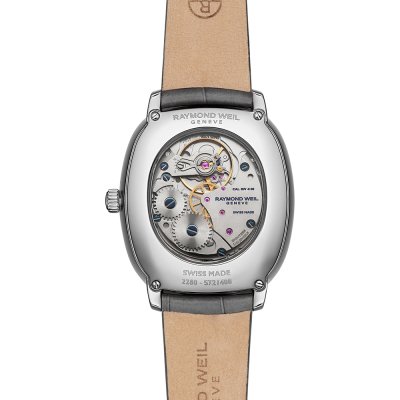 This Raymond Weil watch has a case made of stainless steel with a diameter of 33 mm and is fitted with a leather band. Inside the case lies a Raymond Weil movement and the watch features a Sapphire crystal.