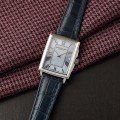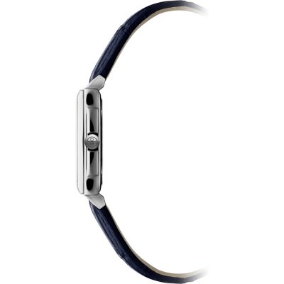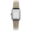 Square- and rectangular-faced watches that were a popular style in the Art Deco era, are making a comeback. This new ladies Toccata model combines the sophisticated Art Deco appeal with an elongated rectangular face and slim 6.25 mm case. This is Raymond Weil’s shallowest case design to date which gives a very sleek profile to the watch. The tiered design gives this watch an illusion of depth without the thickness. The watch is completed with RW monogram on the crown. The rectangular Toccata is available in several combinations of black roman numerals on a crisp white dial or alternating gold & diamond indexes on a mother-of-pearl face.