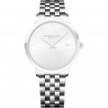 This Raymond Weil watch strap is made of stainless steel and is attached to the watch by means of pushpins. The band has a width of 20 mm and is closed by means of a butterfly clasp with push buttons. The strap has no straight mount which means that this strap is only suitable for the watches listed below.