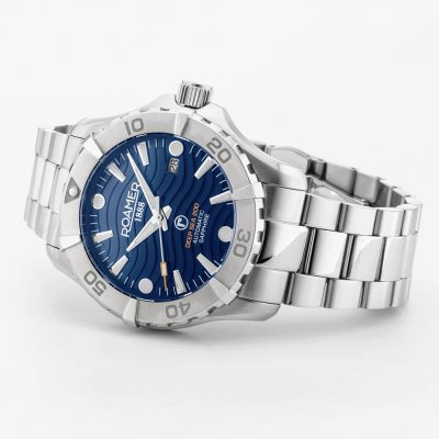 The watch is 20 ATM. This means the watch is suitable for diving. The watch comes with Roamer 2+5.