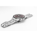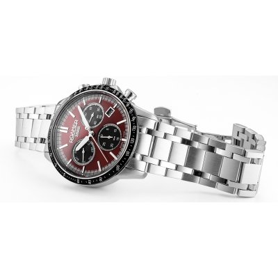 This Roamer watch has a case made of stainless steel with a diameter of 43.5 mm and is fitted with a stainless steel band. Inside the case lies a Ronda movement and the watch features a Sapphire crystal.