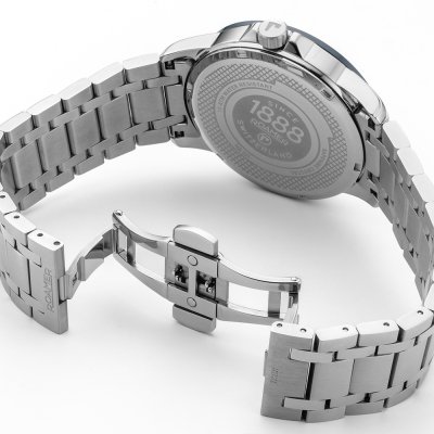 This Roamer watch has a case made of stainless steel with a diameter of 42 mm and is fitted with a stainless steel band. Inside the case lies a Ronda movement and the watch features a Sapphire crystal.