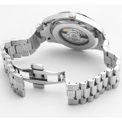 This Roamer watch has a case made of stainless steel with a diameter of 42 mm and is fitted with a stainless steel band. Inside the case lies a Sellita movement and the watch features a Sapphire crystal.