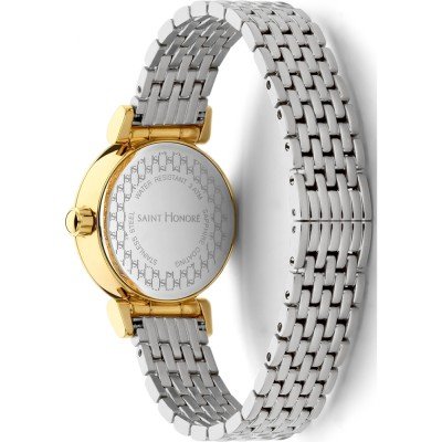 This Saint Honoré watch has a case made of stainless steel with a diameter of 26 mm and is fitted with a stainless steel band. Inside the case lies a Ronda movement and the watch features a Mineral crystal.