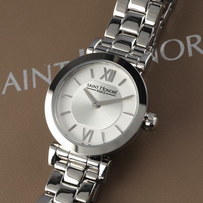 This Saint Honoré watch has a case made of stainless steel with a diameter of 26 mm and is fitted with a stainless steel band. Inside the case lies a Ronda movement and the watch features a Mineral crystal.