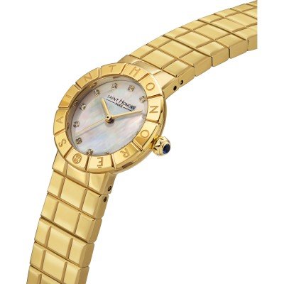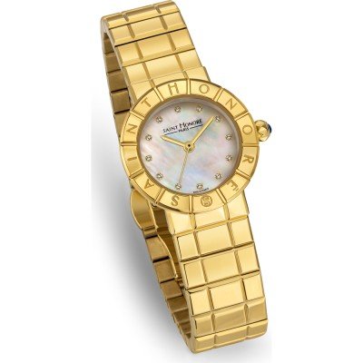 This Saint Honoré watch has a case made of stainless steel with a diameter of 28 mm and is fitted with a stainless steel band. Inside the case lies a Ronda movement and the watch features a Mineral crystal.
