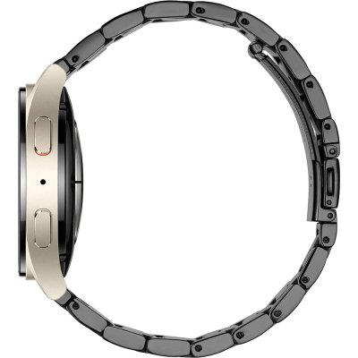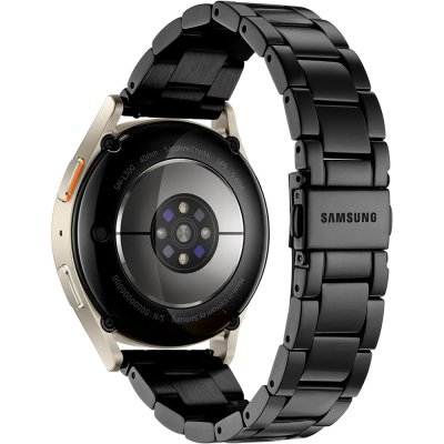 This Samsung watch has a case made of Aluminum with a diameter of 40 mm and is fitted with a stainless steel band. Inside the case lies a Samsung movement and the watch features a Sapphire crystal.