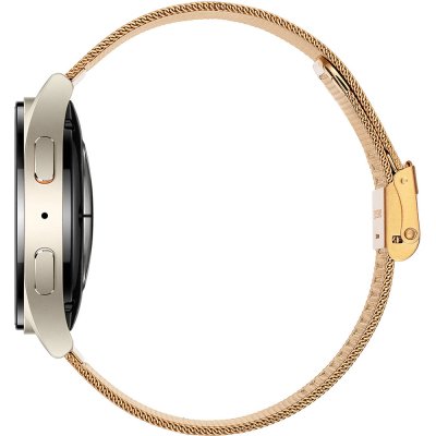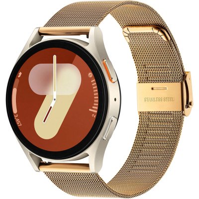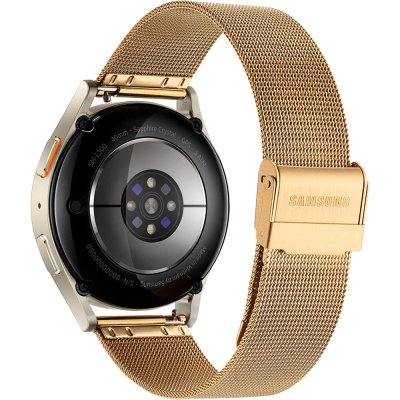 This Samsung watch has a case made of Aluminum with a diameter of 40 mm and is fitted with a stainless steel band. Inside the case lies a Samsung movement and the watch features a Sapphire crystal.