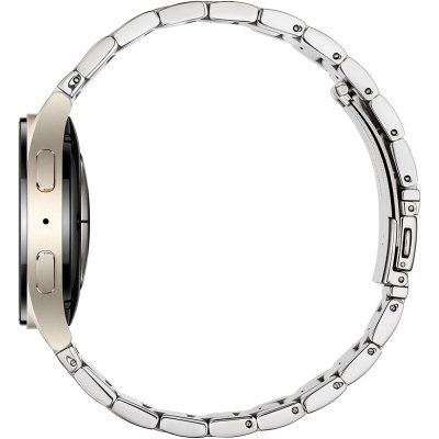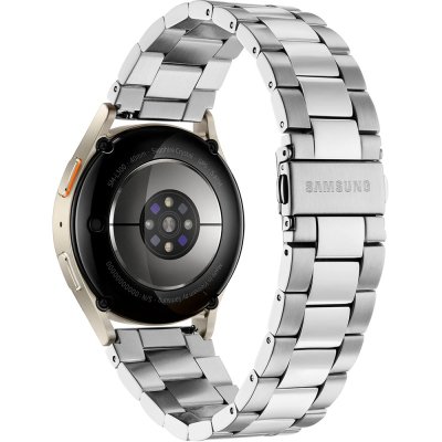 This Samsung watch has a case made of Aluminum with a diameter of 40 mm and is fitted with a stainless steel band. Inside the case lies a Samsung movement and the watch features a Sapphire crystal.