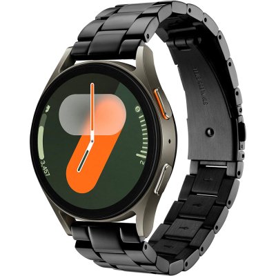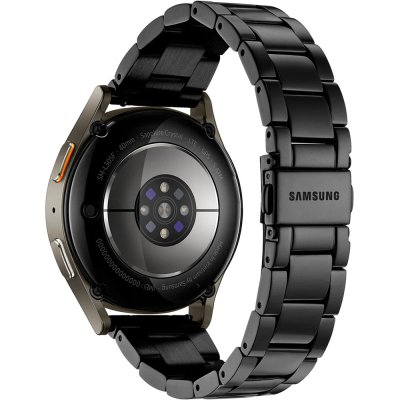 This Samsung watch has a case made of Aluminum with a diameter of 40 mm and is fitted with a stainless steel band. Inside the case lies a Samsung movement and the watch features a Sapphire crystal.