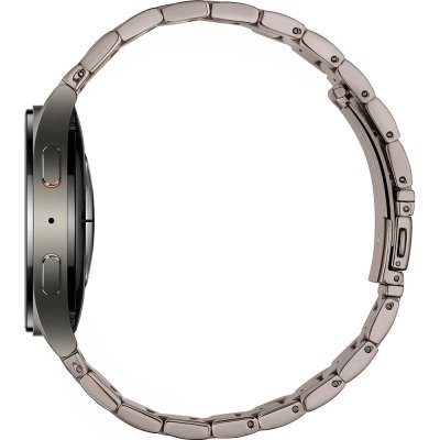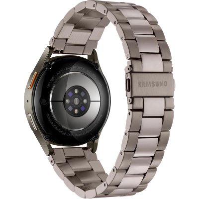 This Samsung watch has a case made of Aluminum with a diameter of 40 mm and is fitted with a stainless steel band. Inside the case lies a Samsung movement and the watch features a Sapphire crystal.