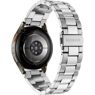 This Samsung watch has a case made of Aluminum with a diameter of 40 mm and is fitted with a stainless steel band. Inside the case lies a Samsung movement and the watch features a Sapphire crystal.