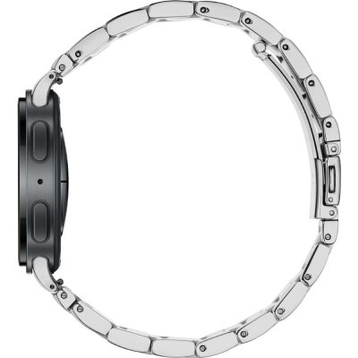 This Samsung watch has a case made of Aluminum with a diameter of 40 mm and is fitted with a stainless steel band. Inside the case lies a Samsung movement and the watch features a Sapphire crystal.
