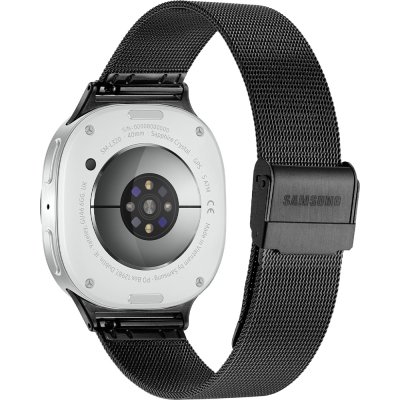 This Samsung watch has a case made of Aluminum with a diameter of 40 mm and is fitted with a stainless steel band. Inside the case lies a Samsung movement and the watch features a Sapphire crystal.