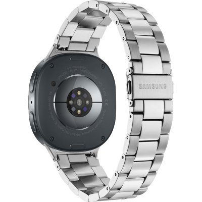 This Samsung watch has a case made of Aluminum with a diameter of 44 mm and is fitted with a stainless steel band. Inside the case lies a Samsung movement and the watch features a Sapphire crystal.