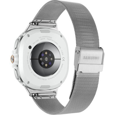 This Samsung watch has a case made of Aluminum with a diameter of 46 mm and is fitted with a Leather over silicone band. Inside the case lies a Samsung movement and the watch features a Sapphire crystal.