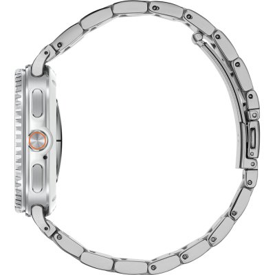 This Samsung watch has a case made of Aluminum with a diameter of 46 mm and is fitted with a Leather over silicone band. Inside the case lies a Samsung movement and the watch features a Sapphire crystal.