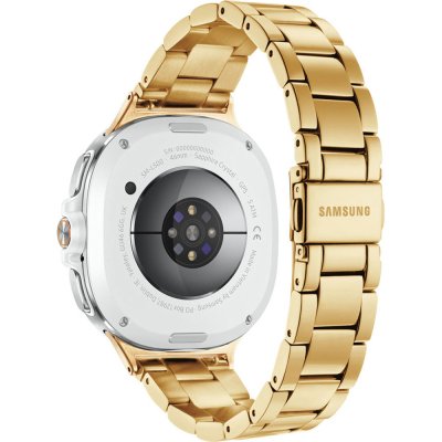 This Samsung watch has a case made of Aluminum with a diameter of 46 mm and is fitted with a Leather over silicone band. Inside the case lies a Samsung movement and the watch features a Sapphire crystal.