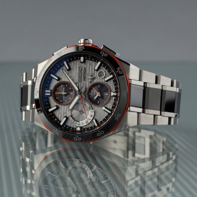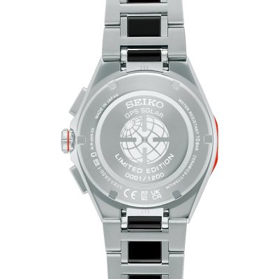 This Seiko watch has a case made of titanium with a diameter of 43.4 mm and is fitted with a titanium band. Inside the case lies a Seiko movement and the watch features a Double anti-reflective sapphire crystal.