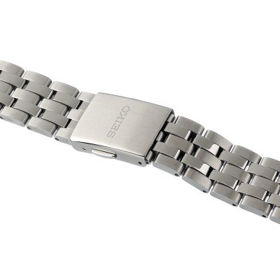 This Seiko watch strap is made of stainless steel and is attached to the watch by means of pushpins. The band has a width of 21 mm and is closed by means of a deployment clasp with push buttons. The strap has no straight mount which means that this strap is only suitable for the watches listed below.